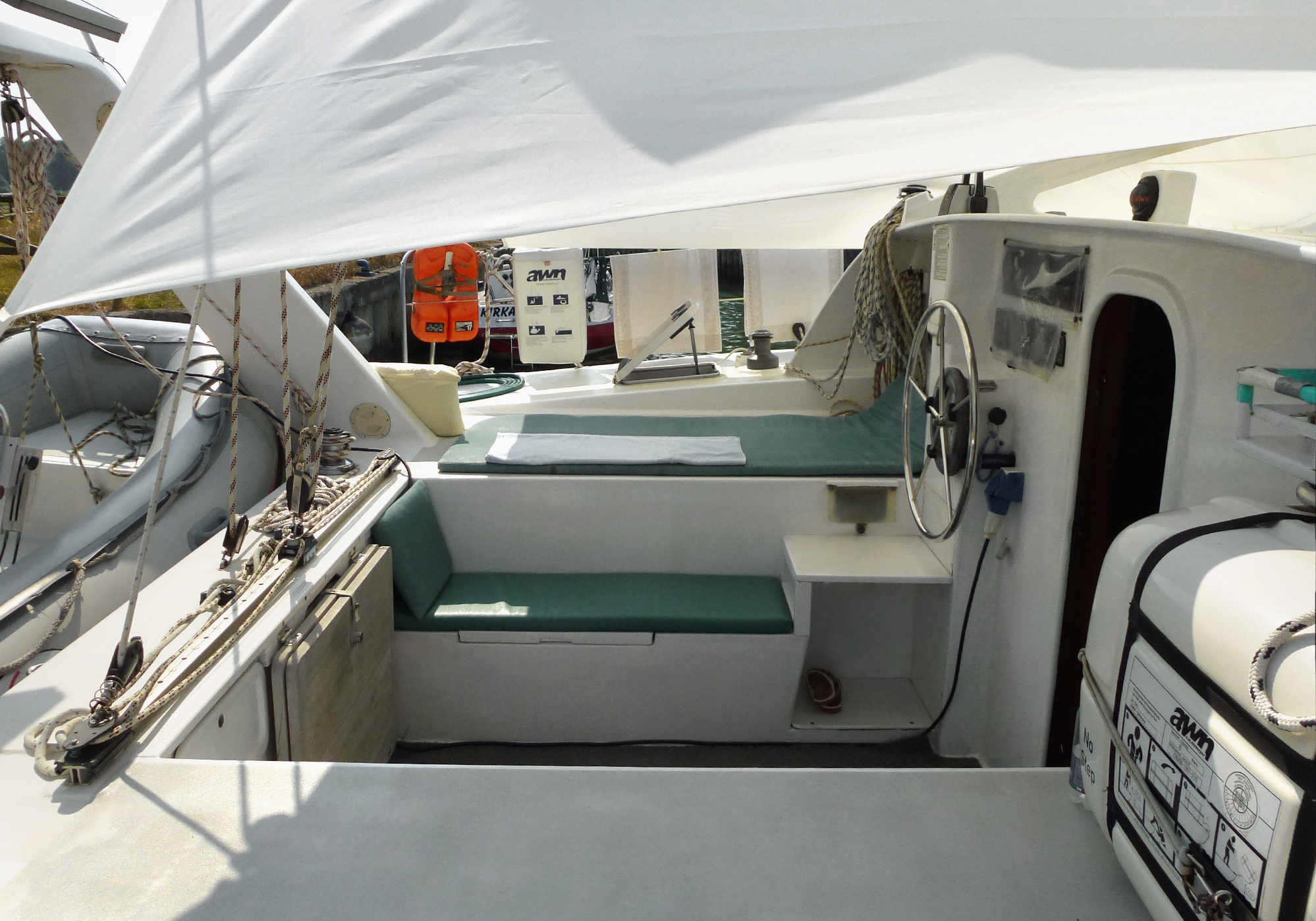 Länge: 45 FußLock Crowther Design, gebaut in WEST-System strip plank, verstärkt mit unidirektionalen und triaxialen Gelegen an hochbelasteten Stellen
